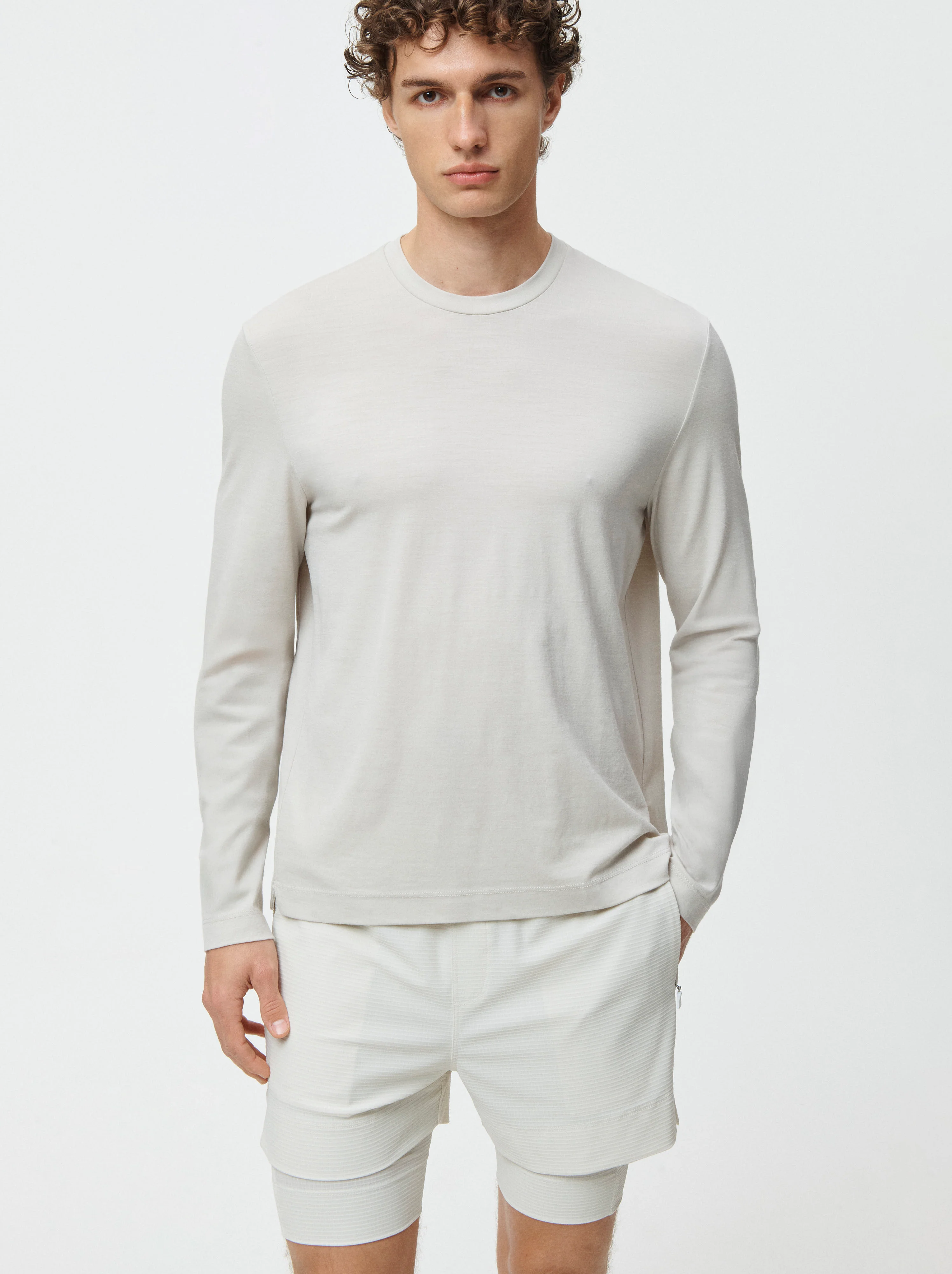 Handcrafted in New York, the MERINO TEC LONG SLEEVE is constructed from 100% virgin merino wool - woven by a heritage Italian mill with fibers sourced from sustainably managed farms in Australia and New Zealand. Garment-washed for a refined finish and easy, machine-washable care, merino offers natural thermoregulation - wicking moisture during activity and adding warmth when layered. Featuring our signature profile, this versatile top transitions effortlessly between active and casual wear.